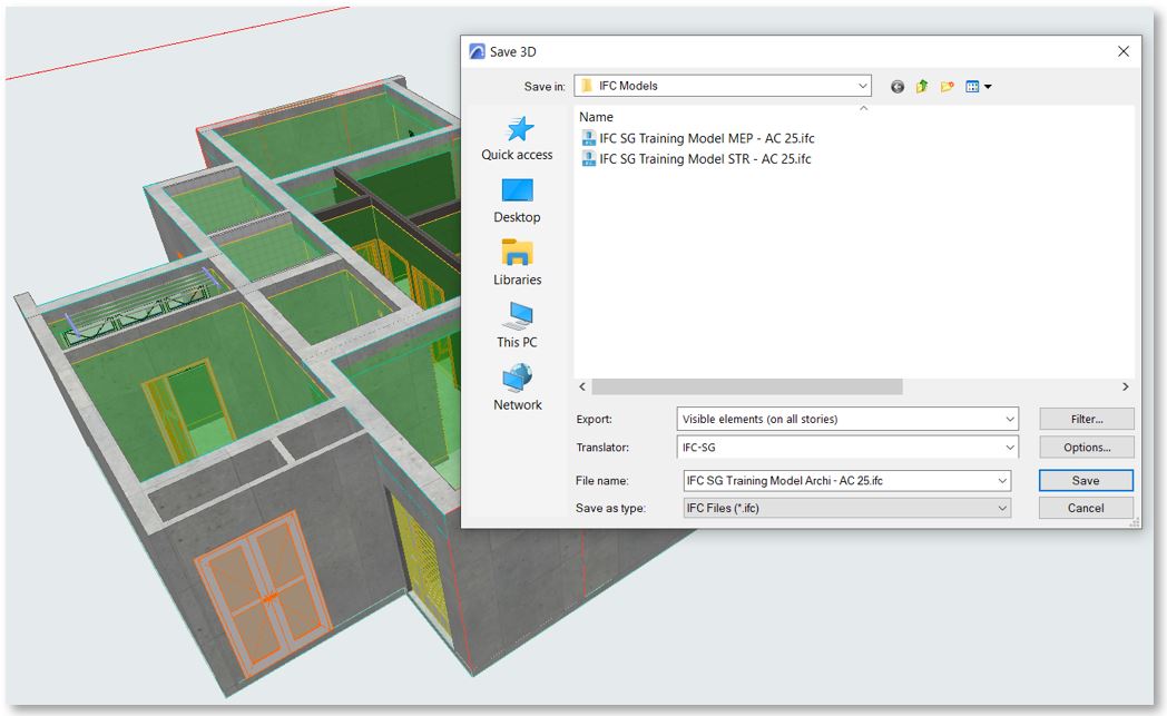 - Industry practitioners shall use the IFC-SG Resource Kit to convert Native BIM models into IFC-SG models and verify no data loss occurred during the exporting.
