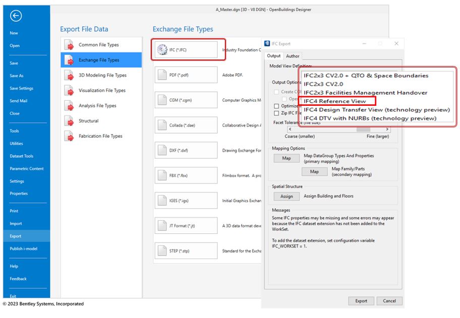 •Model could export to IFC4x3 but unable to see default psets & sgpsets. | ·Open the workset cfg file and set IFC_Workset=1 to see the IFC Psets & SGPsets. For on-going projects: ·Apply a schema upgrade for on-going projects |