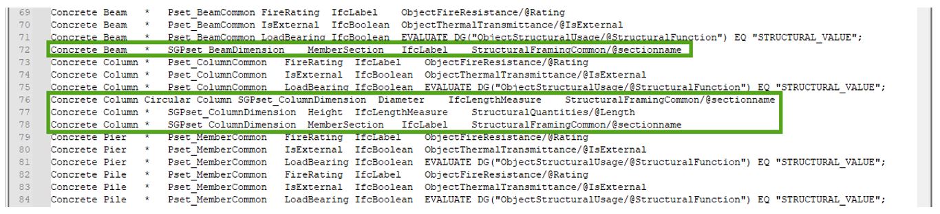 - A complete set of IFC-SG model shall consist of elements as described in this section of this COP. For example, a structural model can comprise of the following :