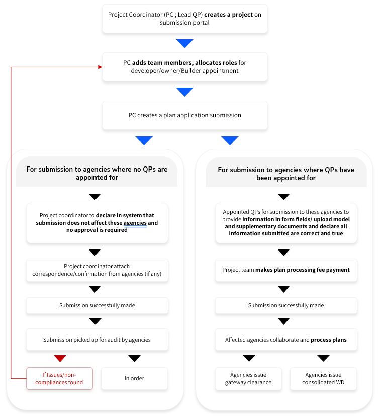 - It is possible for larger projects (e.g. MRT Stations) to submit for both Design Gateway and DSP concurrently (e.g. Design Gateway for the Station Box and DSP for the Pedestrian Overhead Bridge)